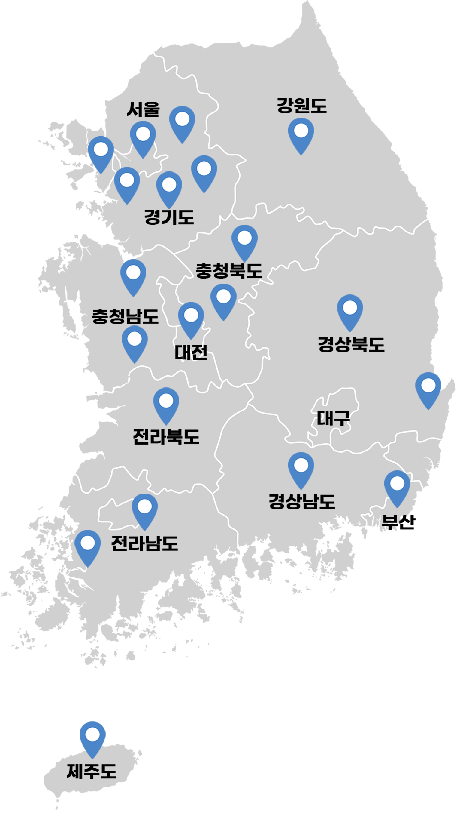 서울, 수도권, 강원권, 충청권, 전라권, 경상권, 제주까지 전국 20여개 지점을 운영 중이며, 일부 지역을 제외하고는 전국 서비스가 가능합니다.