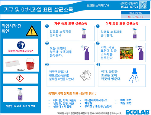 ㆍ식품 조리기구, 테이블 포면, 야채/과일 표면 등 폭 넓은 사용