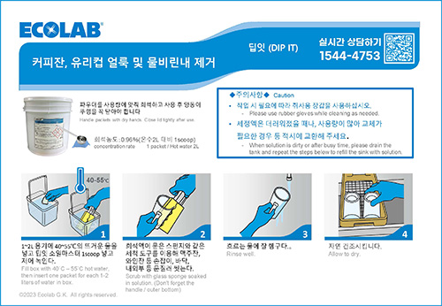 1. 온수(60~70도)에 희석하여 30분 이내로 침지한다.
