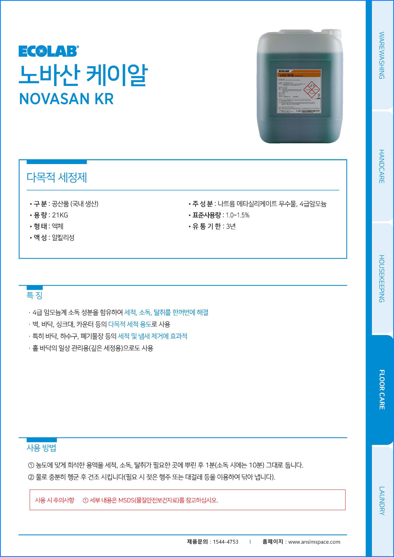 ㆍ일상적인 바닥 청소와 소독 용도로 사용