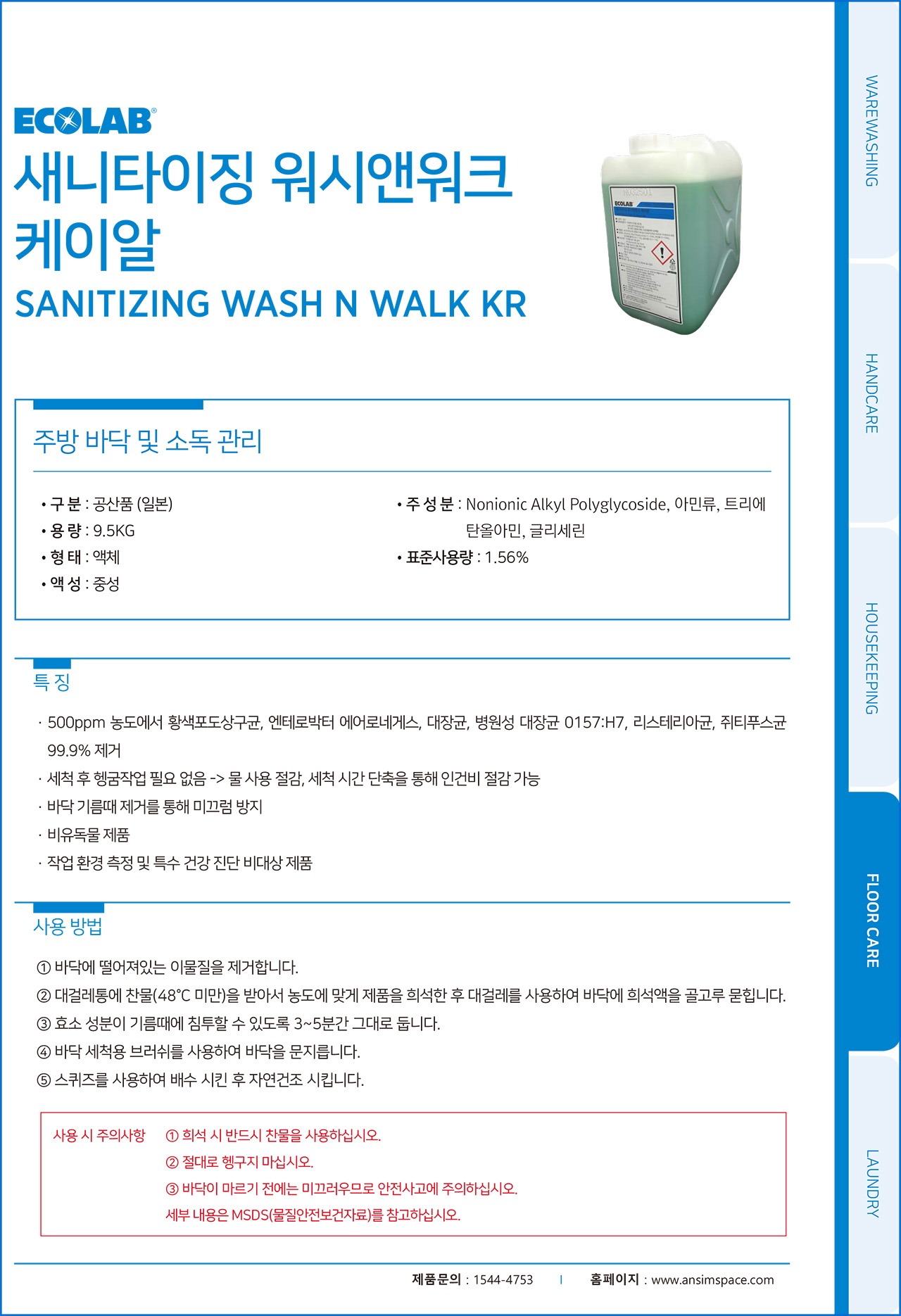 ㆍ세척 후 물 헹굼이 없어, 시간단축 및 인건비 절감