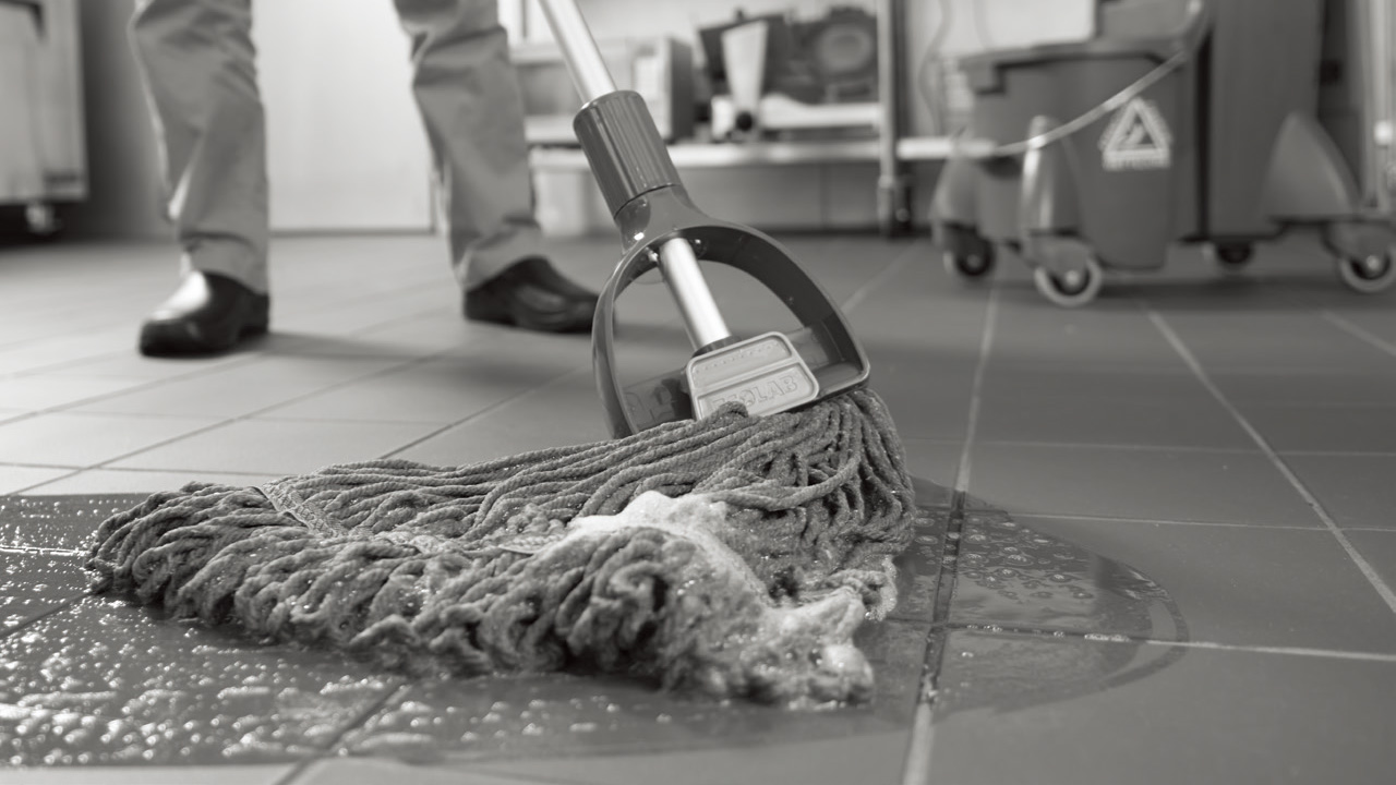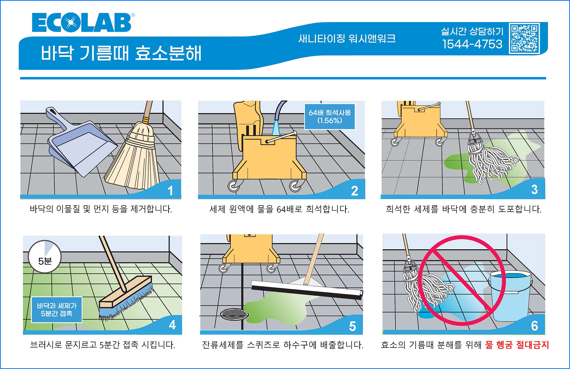 1. 대걸레로 희석액을 바닥 표면에 골고루 묻힌다.