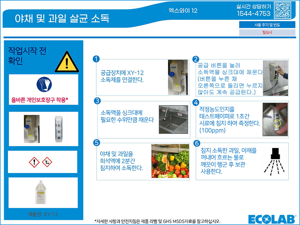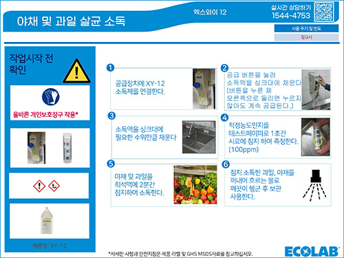 1. 야채, 과일을 희석액에 담가 2분 이상 침지한다.